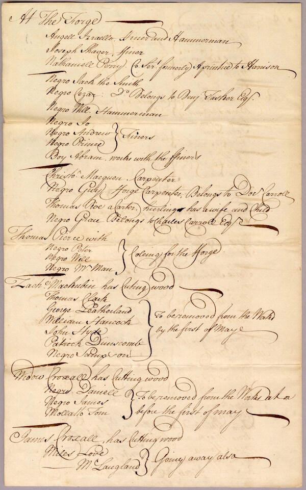 The Baltimore Iron Works opened with a workforce of 89, including 42 enslaved individuals. By 1785, it advertised a workforce of βmore than 200 Negroes.β Colonial ironmasters realized that many of the enslaved were of the Igbo culture and brought vast metal working experience from their homeland. The ironworks managers preferred enslaved laborers, whom they felt were more reliable than transported convicts. These highly-skilled, enslaved ironworkers received more food and clothes rations, as well as better living situations than unskilled, enslaved laborers.